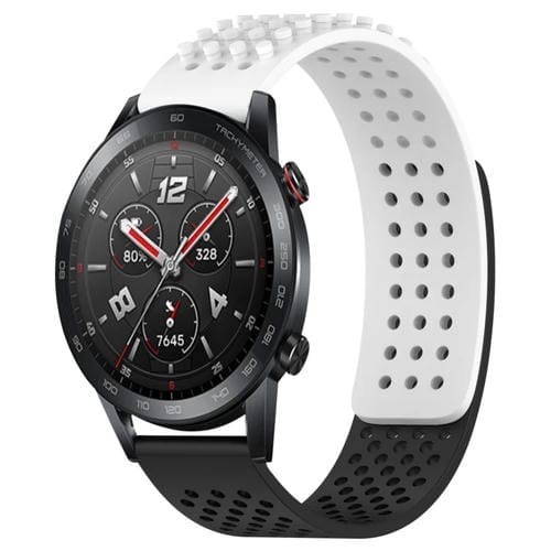 Correa de Reloj Silicona para Honor Watch GS 3I con Puntos 3D Transpirables y Orificios 22mm (Blanco + Negro)