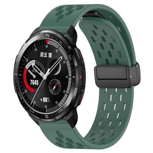 Pour Honor Watch GS Pro 22 mm Bracelet de montre en silicone à fermoir magnétique pliant (vert foncé)