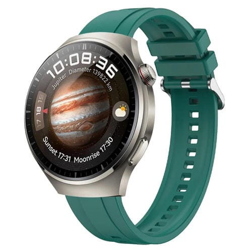 Correa de Silicona para Huawei Watch 4 Pro con Patrón de Neumático y Hebilla Plateada (Verde Oscuro)