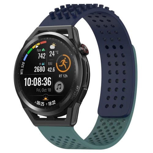 Correa de Silicona para Huawei Watch GT Runner con Puntos 3D Transpirables y Orificios de 22mm (Azul Medianoche + Verde Oliva)