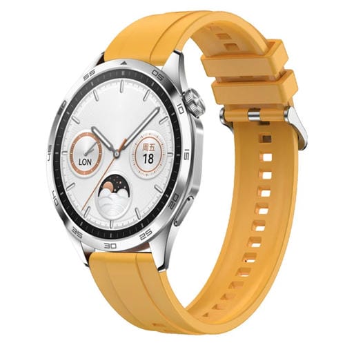 Correa de Silicona para Huawei Watch GT4 46mm con Patrón de Neumático y Hebilla Plateada (Amarillo)