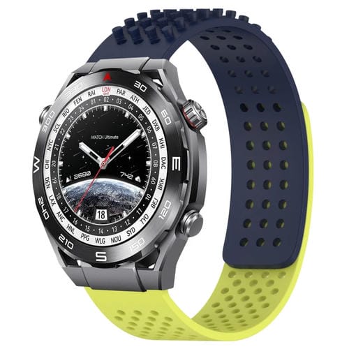 Correa de Silicona para Huawei Watch Ultimate 22mm con Puntos 3D Transpirables (Azul Medianoche + Verde Lima)