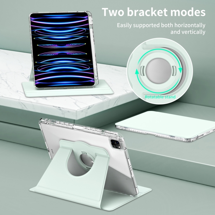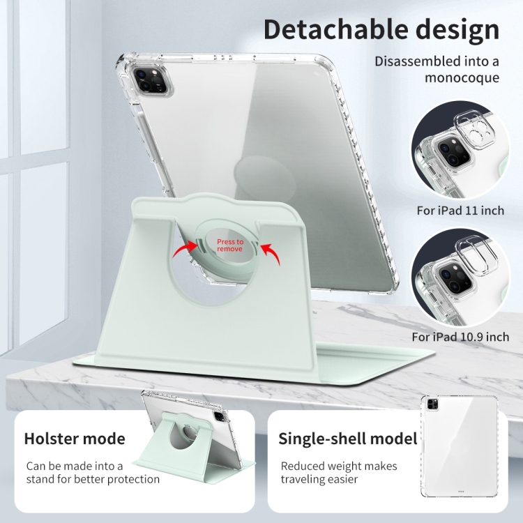 Funda para iPad Pro 11 (2024) Piel Acrílica Transparente Desmontable Rotación 360 (Verde Claro)