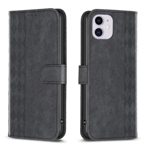 Funda de Teléfono iPhone 11 Cuero En Relieve a Cuadros (Negro)