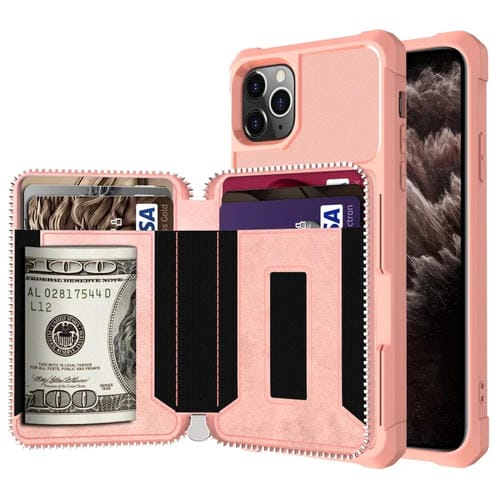 Funda Trasera Zipper Wallet Card Bag para iPhone 11 Pro Max PU (Oro Rosa)