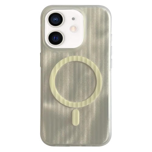 Funda para Teléfono iPhone 12 Magsafe Magnética Sensación de Piel a Rayas (Amarillo)