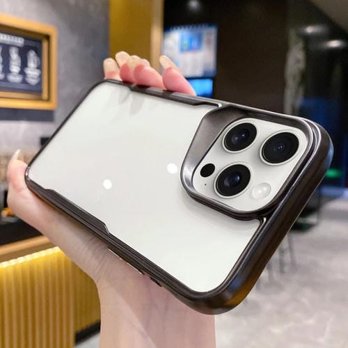 Caja de teléfono híbrida para iPhone 12 Pro Max con PC y marco de TPU galvanizado (Negro)