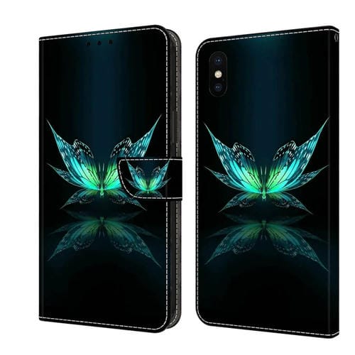 Pour iPhone X / XS Crystal 3D Étui de protection en cuir antichoc (réflexion Dutterfly)
