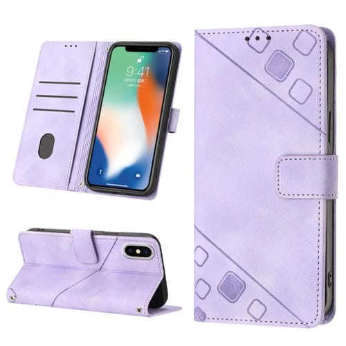 Estuche para Teléfono iPhone X / Xs Cuero En Relieve con Tacto de Piel (Púrpura Claro)