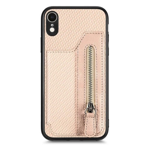 Funda de teléfono para iPhone Xr con cremallera y tapa horizontal de fibra de carbono (Caqui)