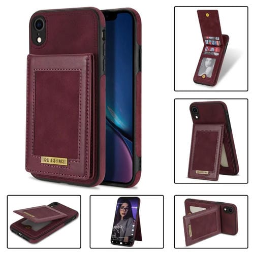 Estuche para Teléfono N.Bekus iPhone Xr Ranura para Tarjeta con Tapa Vertical Rfid (Rojo Vino)