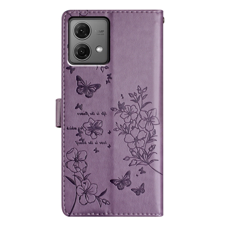 Funda de Cuero para Motorola Moto G84 5G con Mariposas y Flores (Púrpura)