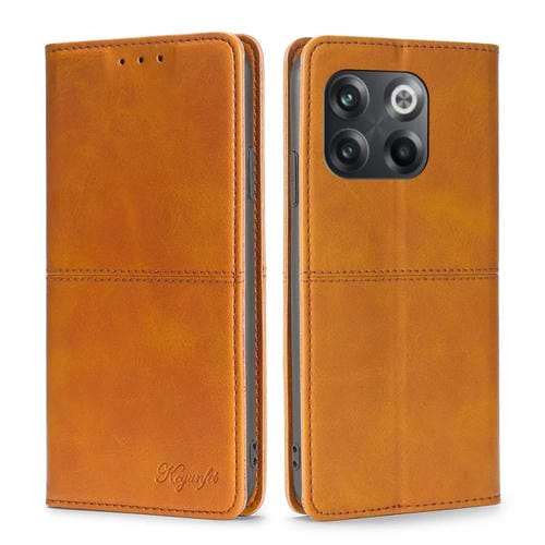 Funda de Cuero Magnético para OnePlus 10T con Textura de Vaca (Marrón Claro)