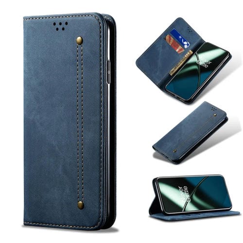 Funda de Cuero Flip para OnePlus Ace 2 5G con Textura Denim (Azul)