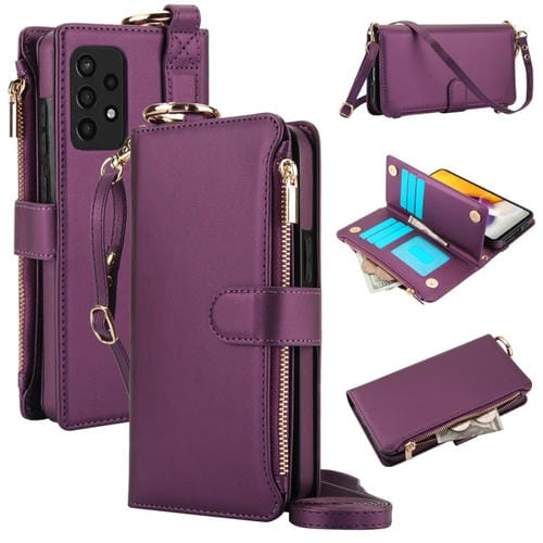Funda para Teléfono Samsung Galaxy A53 4G / 5G Cuero con Billetera y Anillo Cruzado (Púrpura Oscuro)