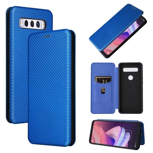 Funda para TCL 10 Se de Cuero Magnético con Textura de Fibra de Carbono y Ranura para Tarjeta (Azul)