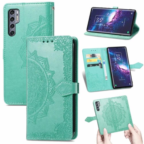 Funda de Cuero Horizontal Flip para TCL 20 Pro 5G Mandala Flower con Soporte, Ranura para Tarjeta, Billetera y Cordón (Verde)