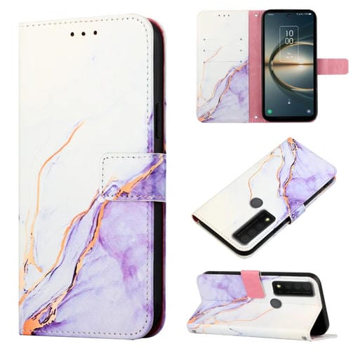 Funda de Teléfono TCL 30 V 5G T781S/30 Xe 5G Pt003 con Tapa de Cuero y Patrón Mármol (Blanco Púrpura)