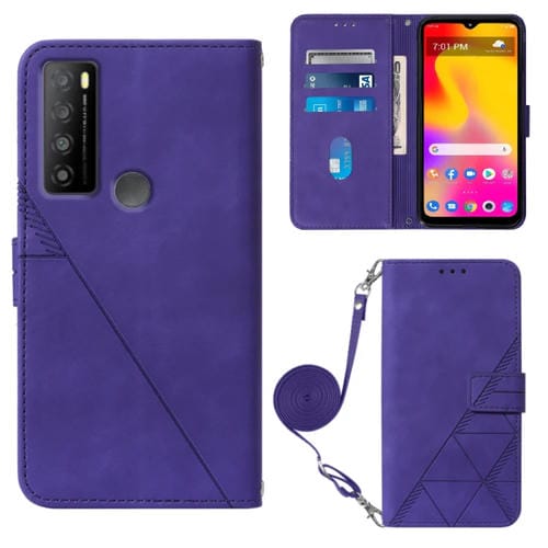 Funda de Cuero Crossbody 3D para TCL 30Xl T701Dl con Tapa en Relieve (Púrpura)