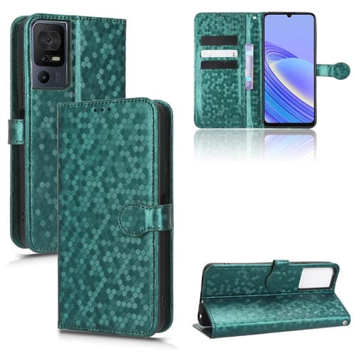 Funda de Cuero para TCL 40 con Textura Punto de Panal (Verde)