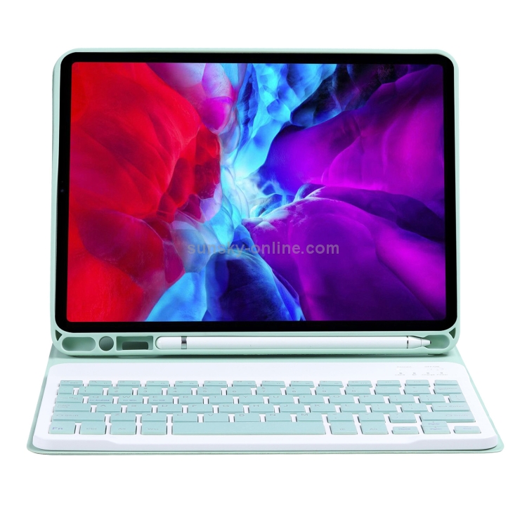 Cárcasa de Cuero Teclado Bluetooth Caramelo C-11B con Ranura y Soporte para iPad Pro 11 (2021) (Verde Claro)