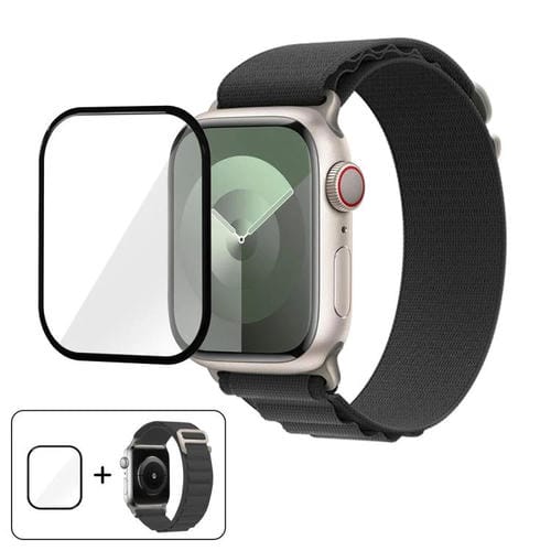 Correa de nailon con hebilla y película curva 3D para Apple Watch Series 41 mm (gris oscuro)
