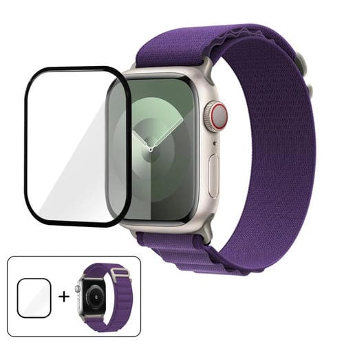 Correa de nailon con hebilla y película curva 3D para Apple Watch Series 44 mm (morado)