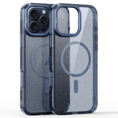 Estuche Magnético Magsafe con Soporte para Lentes con Purpurina en Polvo para iPhone 16 Pro (Azul Titanio Transparente)