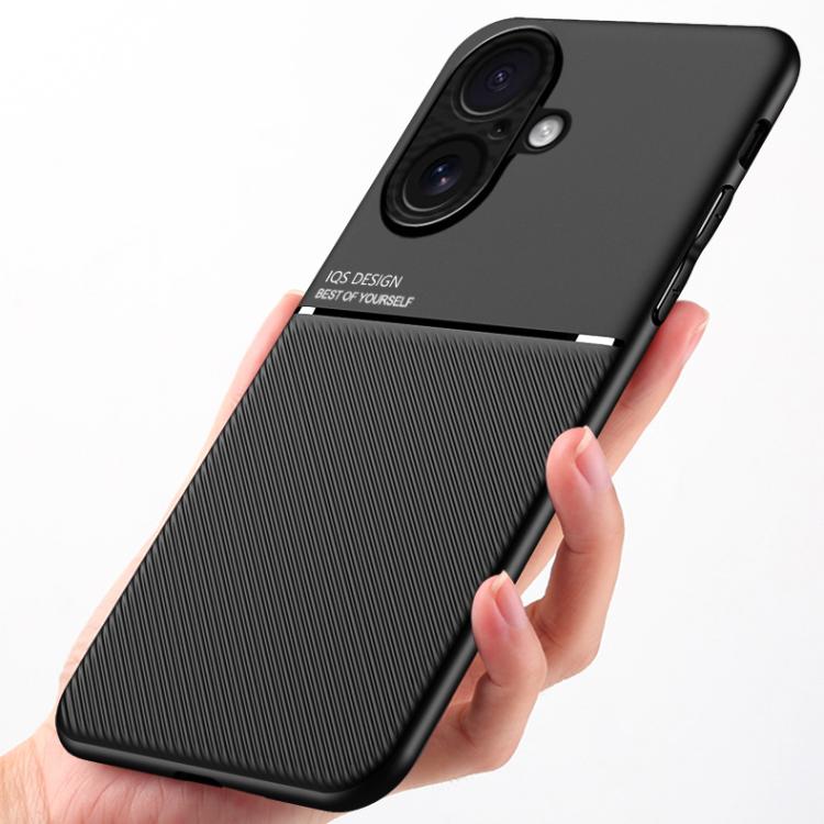 Funda clásica de PC + TPU con diseño de tira inclinable y granulado para iPhone 17 (azul)