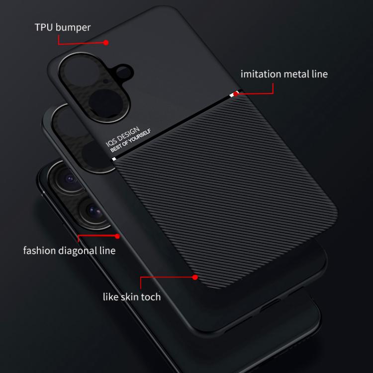 Funda clásica de PC + TPU con diseño de tira inclinable y granulado para iPhone 17 (verde)