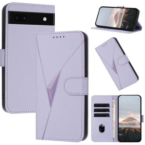 Funda de Cuero con Cierre de Hebilla y Diseño Triangular para Google Pixel 6A (Morado Claro)