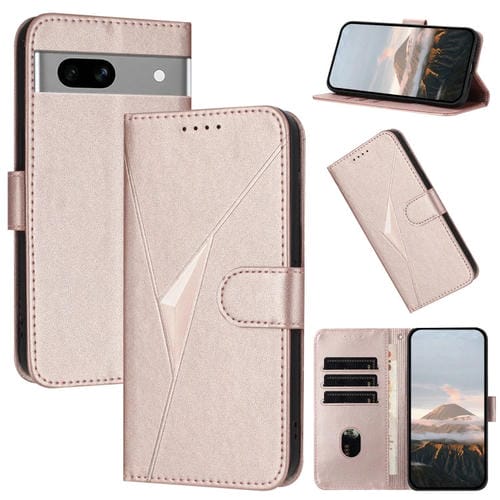 Funda de Cuero con Cierre de Hebilla y Diseño Triangular para Google Pixel 7A (Oro Rosa)