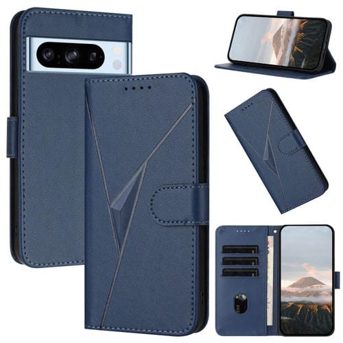 Funda de Cuero con Cierre de Hebilla y Diseño Triangular para Google Pixel 8 Pro (Azul)