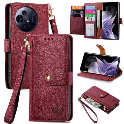 Funda de Cuero Nxtpaper Love para Teléfono TCL 50 Pro con Cordón y Cremallera (Rojo)