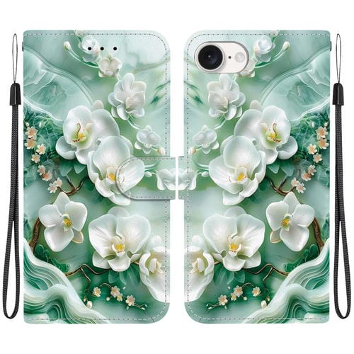 Funda de Cuero iPhone 16E Dibujo de Colores Textura de Cristal (Flores de Jade)