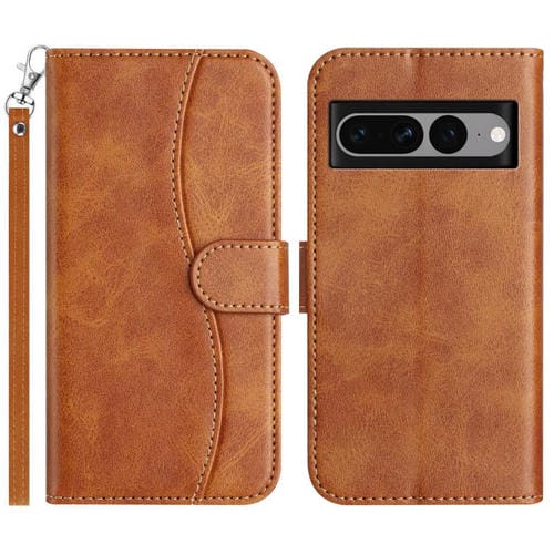 Funda de Cuero con Doble Pliegue en Forma de S para Google Pixel 7 Pro (Marrón)