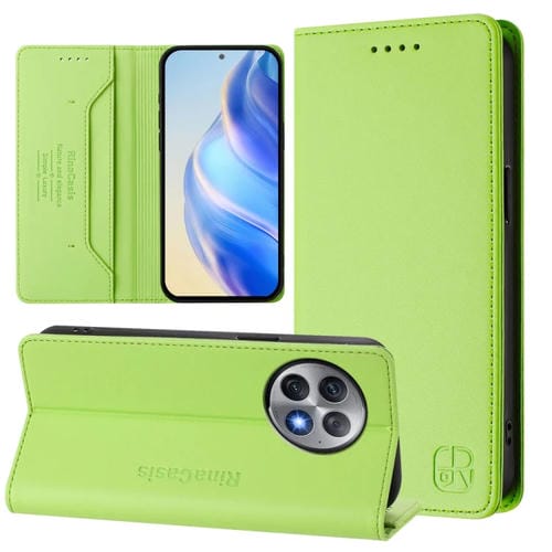 Funda de Cuero con Doble Pliegue y Succión Magnética RFID para OnePlus Ace 2 Pro Rc01 (Verde Hierba)