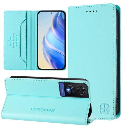 Funda de Cuero para Teléfono TCL 505 Rc01 con Doble Pliegue y Succión Magnética Rfid (Verde Menta)