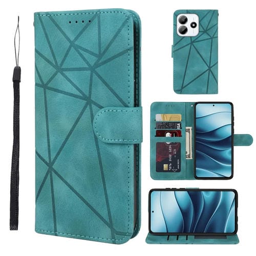 Funda de Cuero con Líneas Geométricas y Tacto de Piel para Redmi Note 14 5G (Verde)