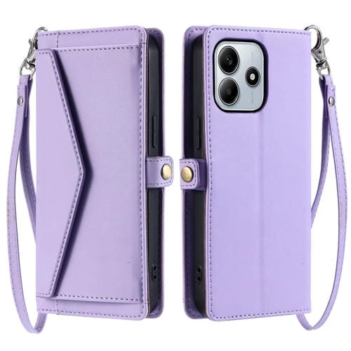 Funda de Cuero con Ranura para Múltiples Tarjetas y Cordón para Xiaomi Redmi Note 14 5G (Morado)