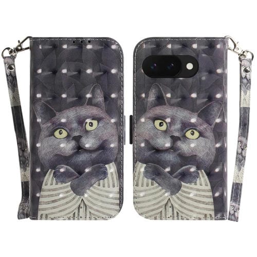 Funda de Cuero con Tapa Horizontal 3D para Google Pixel 9A (Hug Cat)