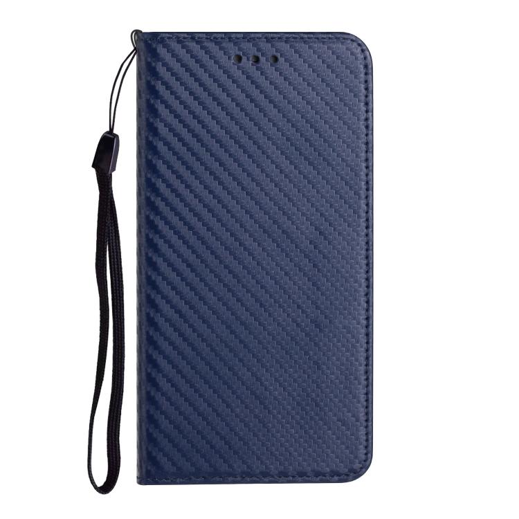 Funda de cuero con tapa magnética y textura de fibra de carbono para iPhone 17 (azul)