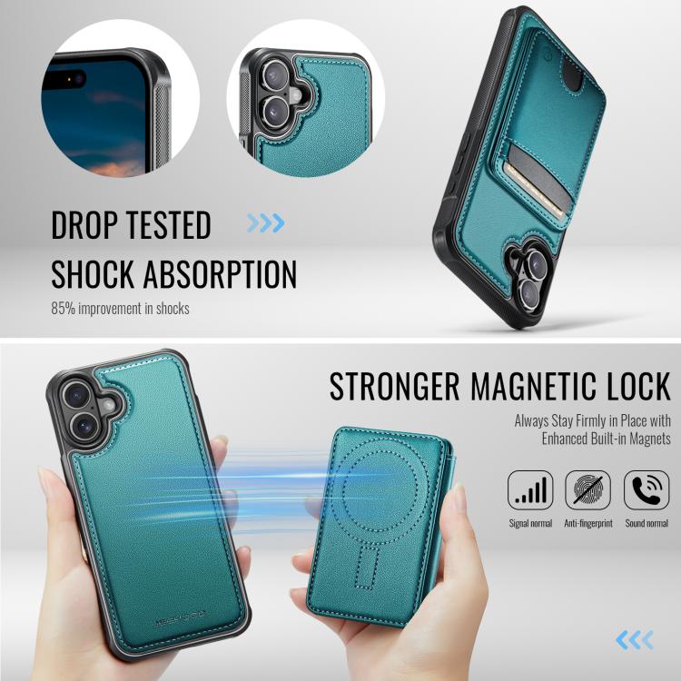 Funda de cuero con tapa para iPhone 17 JEEHOOD J10, con ranuras para tarjetas y ranuras para tarjetas MagSafe (verde)