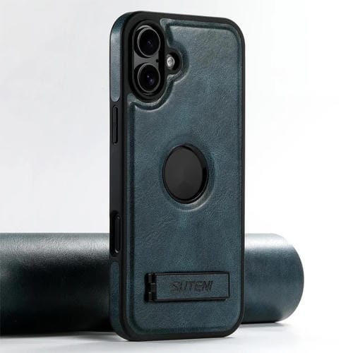 Funda de Cuero Suteni G2 con Tapa Trasera de Cera de Aceite Magsafe para iPhone 16 con Soporte (Azul)