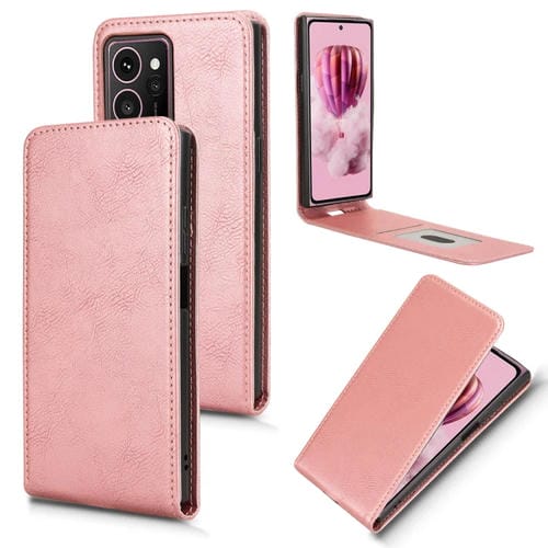Funda de Cuero con Tapa Vertical Magnética para Teléfono Hmd Skyline 5G (Oro Rosa)