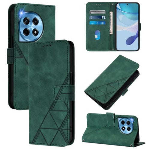 Funda de Cuero con Tapa y Relieve 3D para OnePlus 12R 5G Global (Verde)