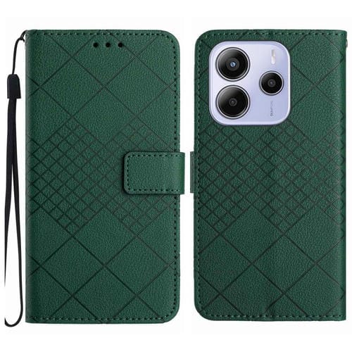 Funda de Cuero con Textura de Cuadrícula Rómbica para Redmi Note 14 4G (163,25mm) (Verde)
