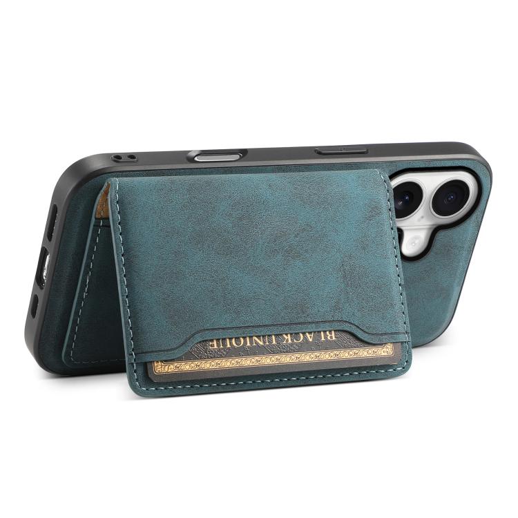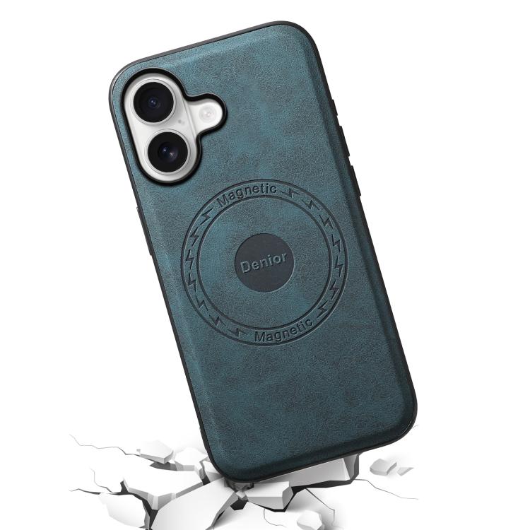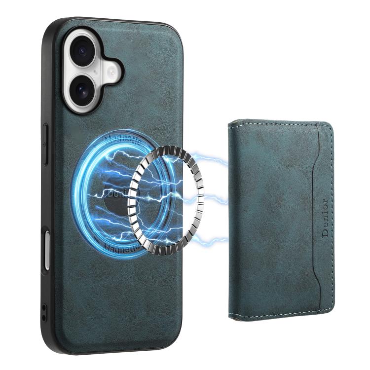 Funda de cuero con textura retro Denior D13 para iPhone 17, con tarjetero MagSafe (azul)
