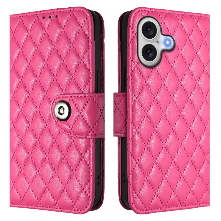 Funda de cuero con textura rómbica y cordón para iPhone 17 (rosa y rojo)