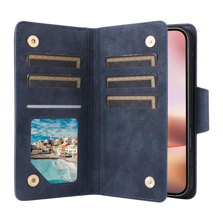 Funda de cuero con tres pliegues y hebilla de remache para iPhone 17 (azul)